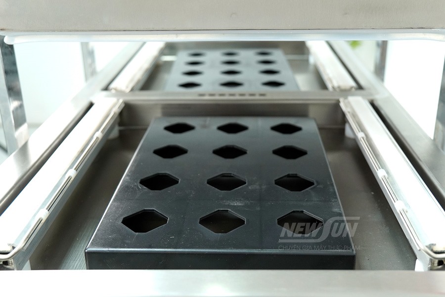 Toàn bộ phần khung và vỏ máy được chế tạo từ inox cao cấp chống gỉ, đáp ứng tiêu chuẩn vệ sinh thực phẩm và mang đến độ bền vượt trội. Bề mặt inox sáng bóng, ít bám bẩn, rất dễ lau chùi sau mỗi ca vận hành, giúp máy luôn duy trì được vẻ đẹp mới, sạch sẽ và bền bỉ theo thời gian.