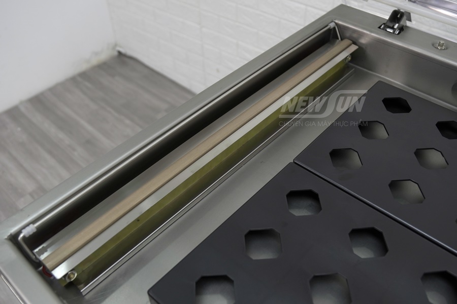 Thanh hàn dạng tràn viền của máy ép chân không DZQ520 Promax còn giúp che kín hệ thống điện, ngăn bụi – hơi ẩm lọt vào, đồng thời giữ mép túi phẳng đẹp và tăng độ bền dây hàn.