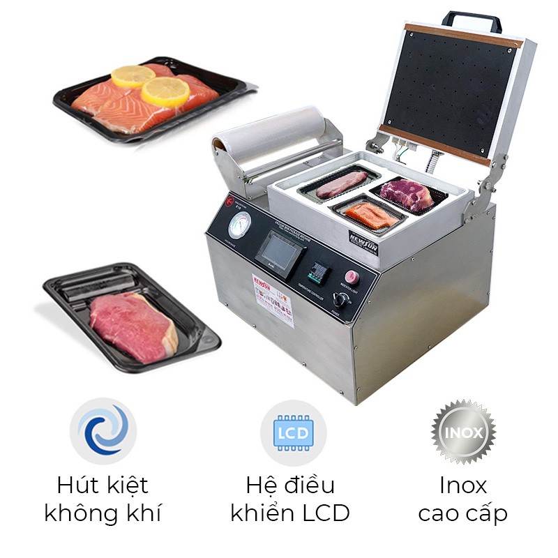 Với năng suất trung bình khoảng 2–3 lần hút mỗi phút, mỗi lần có thể xử lý 3 khay thực phẩm, thiết bị đáp ứng tốt nhu cầu đóng gói sát da trong các nhà hàng, quán ăn hay cơ sở kinh doanh thực phẩm, mang lại hiệu quả cao và tiết kiệm thời gian.