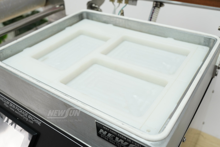 - Giữ nguyên hình dạng và thẩm mỹ sản phẩm: Máy hút chân không sát da bao phủ toàn bộ bề mặt thực phẩm trên khay chứa hoặc khay bao da, giúp sản phẩm không bị biến dạng, lộn xộn hay bị chồng ép. Thành phẩm sau đóng gói trông gọn gàng, đẹp mắt, nâng cao giá trị.