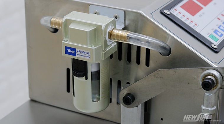 Trong quá trình hút chân không, nếu túi sản phẩm chứa một lượng nước hoặc hơi ẩm nhất định, bộ phận lọc khí của máy sẽ giữ lại toàn bộ bụi bẩn và hơi nước, đảm bảo thực phẩm luôn sạch sẽ và an toàn trước khi đóng gói. Khi bình chứa nước bên trong bộ lọc đầy, bạn có thể dễ dàng tháo ra để đổ nước, giúp máy tiếp tục hoạt động trơn tru mà không làm gián đoạn quy trình đóng gói.