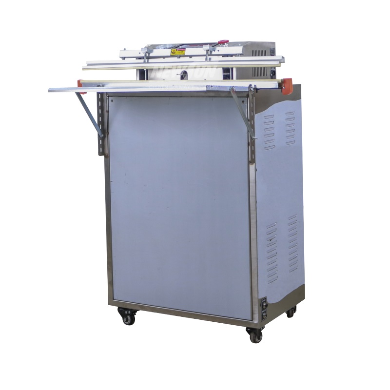 Bàn kê sản phẩm của máy có thể tháo rời chỉ trong vài thao tác đơn giản. Thiết kế này giúp tiết kiệm diện tích sử dụng, đặc biệt trong các khu vực sản xuất hạn chế không gian. Khi cần đóng gói túi lớn hoặc sản phẩm cồng kềnh, người dùng có thể tháo bàn đỡ để tăng không gian thao tác. Việc vệ sinh cũng trở nên nhanh chóng hơn, đảm bảo máy luôn hoạt động trong môi trường sạch sẽ và an toàn.